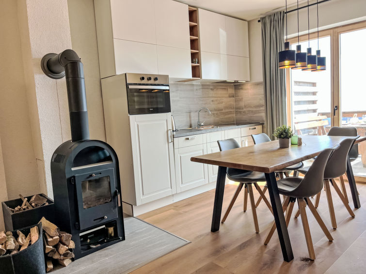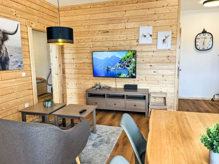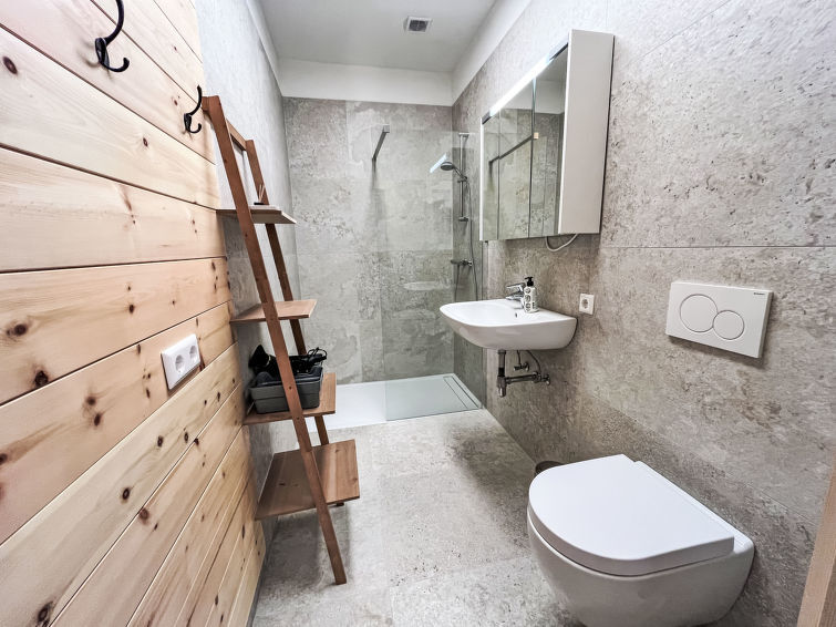 "Stieglitz", appartement 2-kamers 55 m2, souterrain. Modern en met veel hout ingericht: hal. Woon-/eetkamer met zwedenkachel, eettafel, Sat-TV en internationale TV-zenders (Flatscreen TV). Uitgang naar het terras. 1 kamer met 1 bed en 1 x 2 stapelbedden, 1 2-pers bed. Uitgang naar het terras. Open keuken (oven, afwasmachine, 4 keramische glas kookplaten, broodrooster, waterkoker, elektrische koffiemachine). Douche/WC. Vloerverwarming. Parketvloeren. Terras, op het zuiden gelegen. Terrasmeubelen, barbecue (verrijdbaar). Mooi uitzicht op de bergen. Ter beschikking: Internet (Internet (WiFi), gratis). Niet rokers woning.