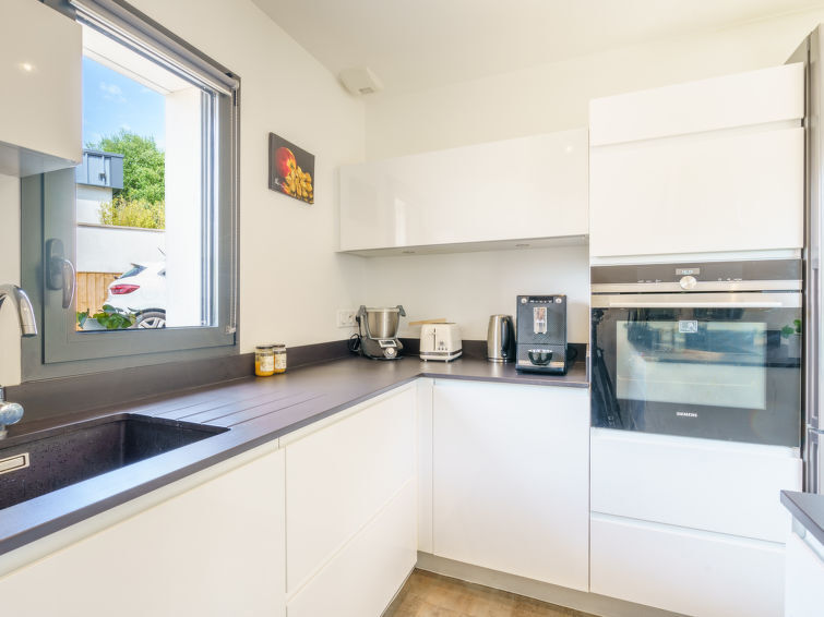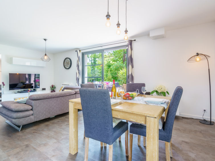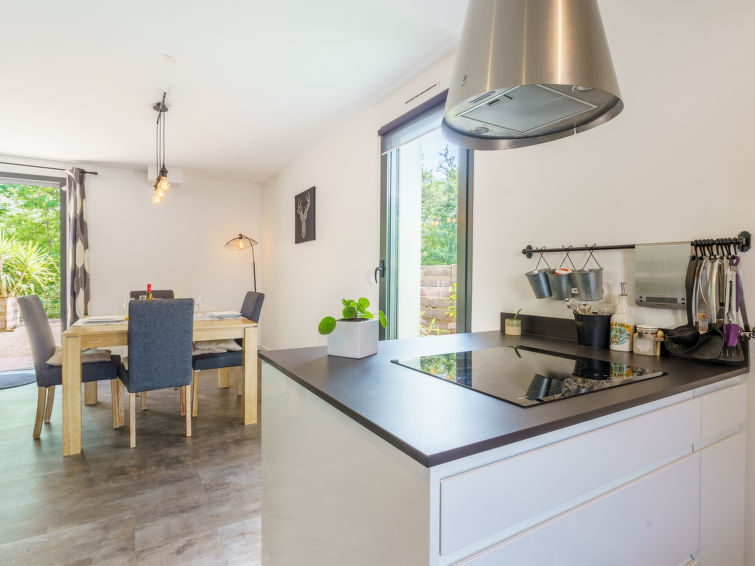 Huis 3-kamers 90 m2. Modern en smaakvol ingericht: woon-/eetkamer met TV (Flatscreen TV). Uitgang naar de tuin, naar het terras. Open keuken (oven, afwasmachine, 3 inductiekookplaten, broodrooster, waterkoker, magnetron, diepvriezer, elektrische koffiemachine, pads voor de koffiemachine (nespresso) extra). Aparte WC. Bovenverdieping: 1 kamer met 1 2-pers bed (160 cm, lengte 200 cm) met 1 2-pers bed (140 cm, lengte 190 cm). Douche, aparte WC. Elektrische verwarming, air-conditioning. Groot terras 60 m2, op het zuidwesten gelegen, tuin, op het zuidwesten gelegen. Terrasmeubelen, barbecue. Ter beschikking: wasmachine, strijkijzer, haardroger. Internet (Internet (WiFi), gratis). Rookvrij huis. Rookmelders. Aanbod door een particulier volgens art. 155, IV van CGI. 6402400299672