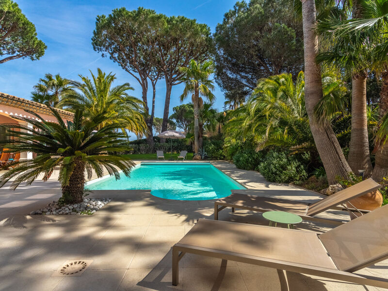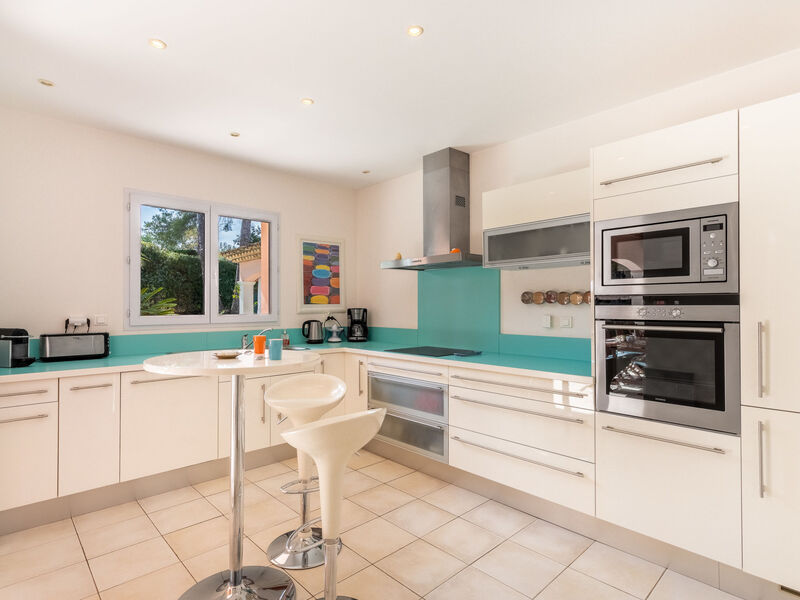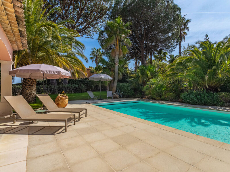 Mooi villa "Indigo", van 2 verdiepingen. Buiten de plaats, 5 km van het centrum van Grimaud, in een woonwijk, 1.4 km van zee, 1.4 km van het strand. Voor alleengebruik: verzorgde tuin 1.330 m2 (omheind) met gazon, openluchtzwembad verwarmd (10 x 5 m, 100 - 190 cm diepte, seizoensgebonden beschikbaarheid: 01.Apr. - 31.Okt.) met oprolbaar afdekscherm. Poolhouse met koelkast, jeu de boules. Winkel 4 km, levensmiddelenwinkel 300 m, supermarkt 4 km, restaurant 800 m, bushalte "Prairies de la mer" 1 km, zandstrand "Les Prairies de la mer" 1.4 km. Jachthaven 3 km, golfterrein (18 holes) 4 km, zeilschool 5 km, tennis 4 km, fietspad 800 m. Attracties in de buurt: Saint Tropez 11 km, Sainte Maxime 11 km, Plages de Pampelonne 17 km, Cannes 85 km, Nice 110 km, Monaco 130 km. Bekende meren kunnen gemakkelijk worden bereikt: Le Lac de Sainte Croix 98 km. Wandelgebied Le Massif de l'Esterel 50 km. Auto noodzakelijk. De sleuteloverdracht vindt plaats bij het agentschap Interhome in Gassin, 4 km.