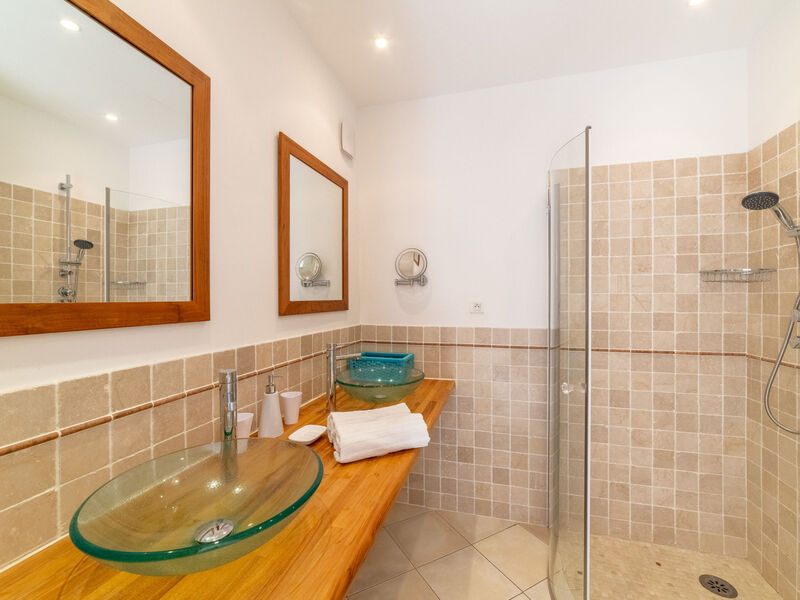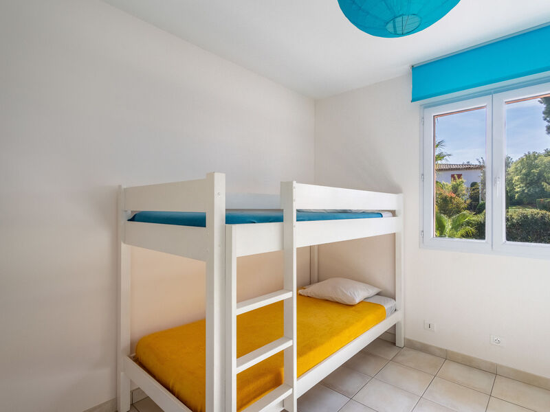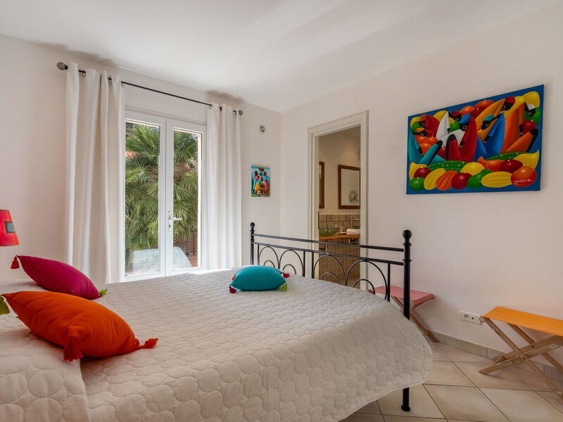 Villa 5-kamers 160 m2 op 2 verdiepingen. Luxueus ingericht: groot woon-/eetkamer met TV (Flatscreen TV). Uitgang naar het terras. 1 kamer met Kleedkamer met 1 2-pers bed (160 cm, lengte 200 cm), bad/douche/WC, dubbele wastafels en TV (Flatscreen TV), air-conditioning. Uitgang naar de tuin. 1 kamer met 1 2-pers bed (160 cm, lengte 200 cm), douche, dubbele wastafels en air-conditioning. Uitgang naar het terras. Keuken (oven, afwasmachine, 3 inductiekookplaten, broodrooster, waterkoker, magnetron, diepvriezer, elektrische koffiemachine, pads voor de koffiemachine (Nespresso) extra). Aparte WC. Bovenverdieping: 1 kamer met 1 2-pers bed (160 cm, lengte 200 cm). Uitgang naar het balkon. 1 kamer met 1 x 2 stapelbedden (90 cm, lengte 200 cm). Douche/WC, dubbele wastafels. Elektrische verwarming, air-conditioning. Balkon 4 m2, groot terras 24 m2, overdekt, op het zuiden gelegen. Terrasmeubelen, barbecue, ligstoelen (8). Ter beschikking: wasmachine, droger, kinderstoel, kinderbed tot 2 jaar, haardroger. Internet (Internet (WiFi), gratis). Parkeerplaats, garage, hoogte 195 cm, breedte 300 cm. Rookvrij huis. 1 klein huisdier/hond toegestaan. Rookmelders. Aanbod door een particulier volgens art. 155, IV van CGI. 83068001414RR